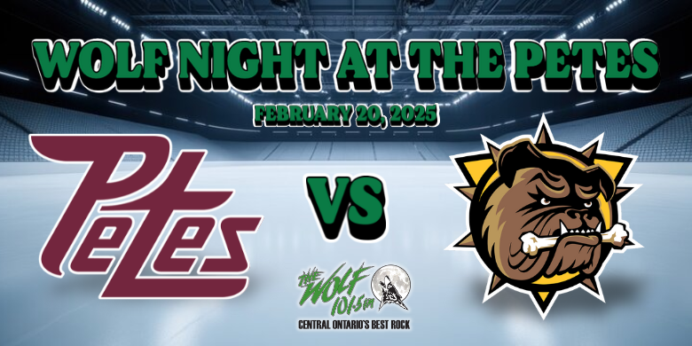 Listen for your chance to win family 4 packs of tickets as 101.5 The Wolf presents WOLF NIGHT AT THE PETES on Thursday February 20 as the Peterborough Petes face off against Brantford.