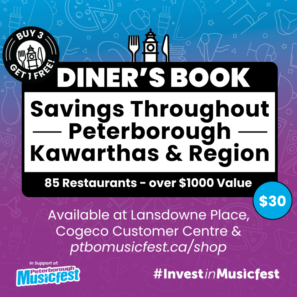 Peterborough Musicfest is thrilled to introduce theĀ 2026 Dinerās Bookāyour passport to the very best of our regionās food scene,Ā andĀ a great way to help bringĀ premier artistsĀ to the Fred Anderson Stage.